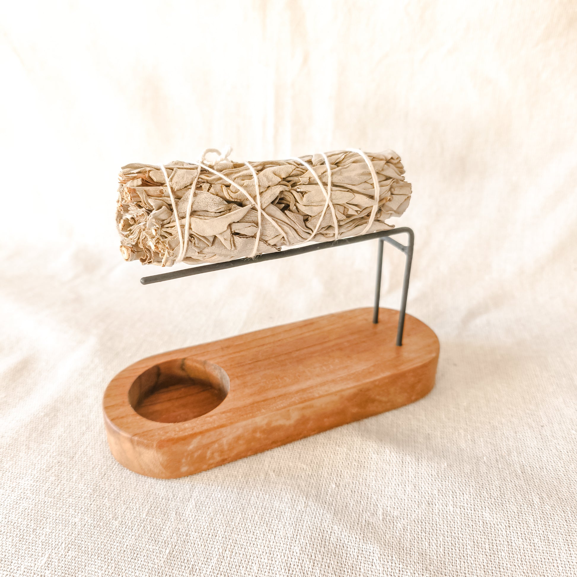 Enciende una vela de té en la base, coloca un bastón de Palo Santo encendido sobre el soporte y disfruta de un sahúmo prolongado.