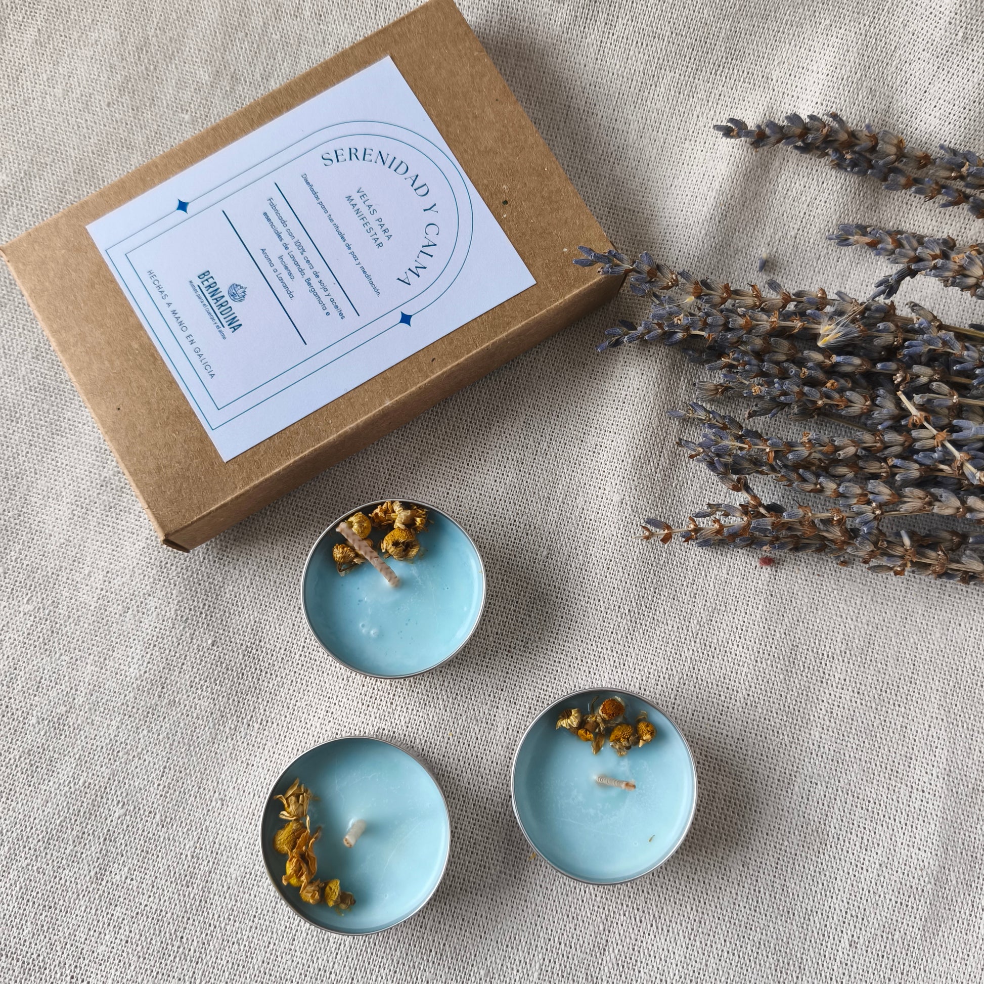 Vela de té de 15gr y 4cm de diámetro. Tiempo de quemado: 4 horas aproximadamente. Fabricada con 100% cera de soja, vegetal, natural, sin parafinas y biodegradables. No testado en animales. Fabricación artesanal. Aceites esenciales de Lavanda, Incienso y Bergamota, puros y de alta calidad. Fragancia aromática que cumple con la normativa IFRA, sin ftalatos.