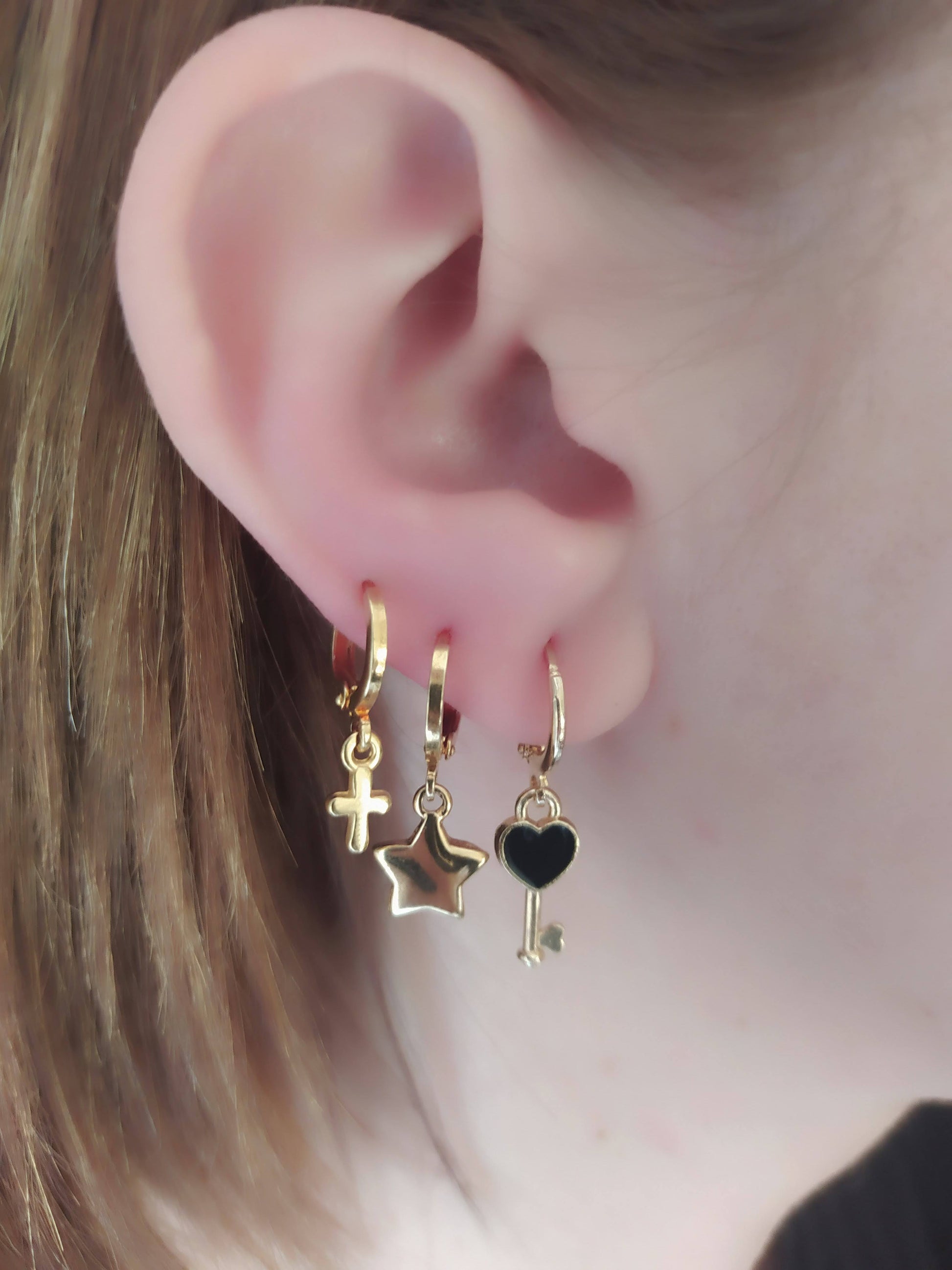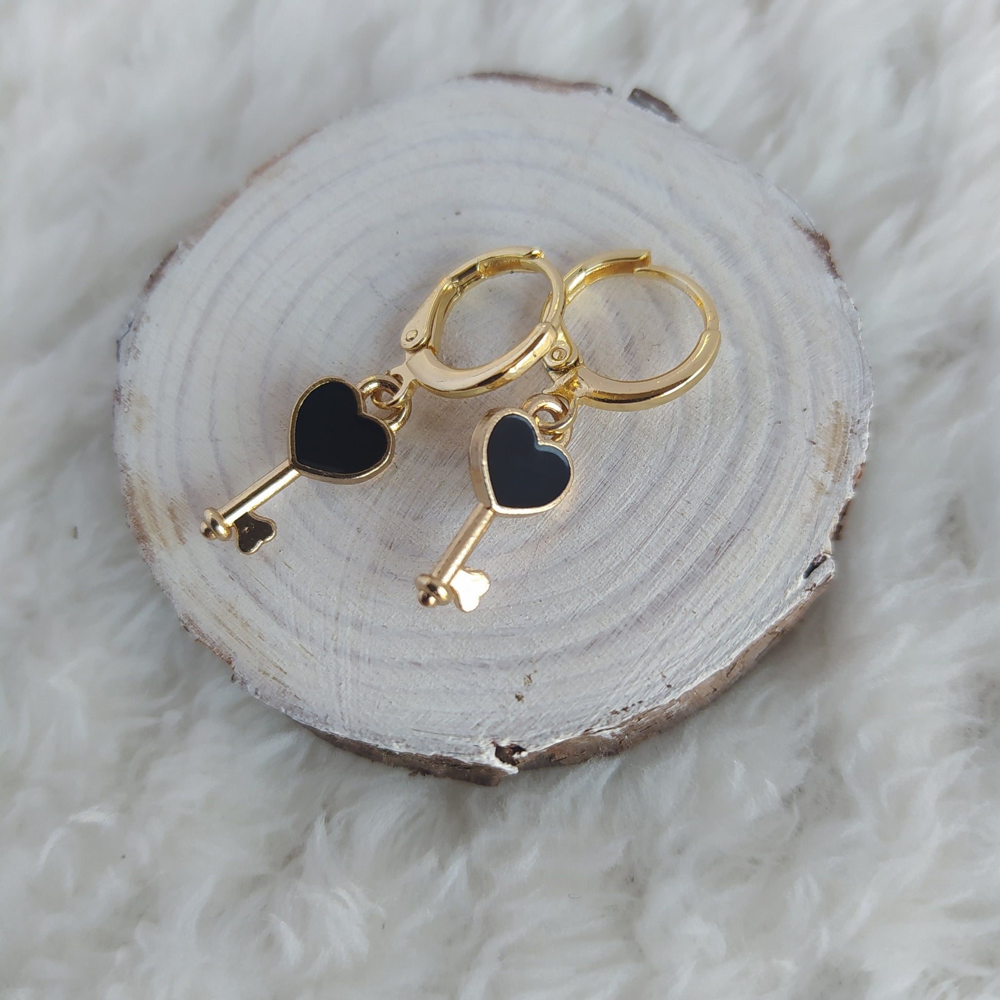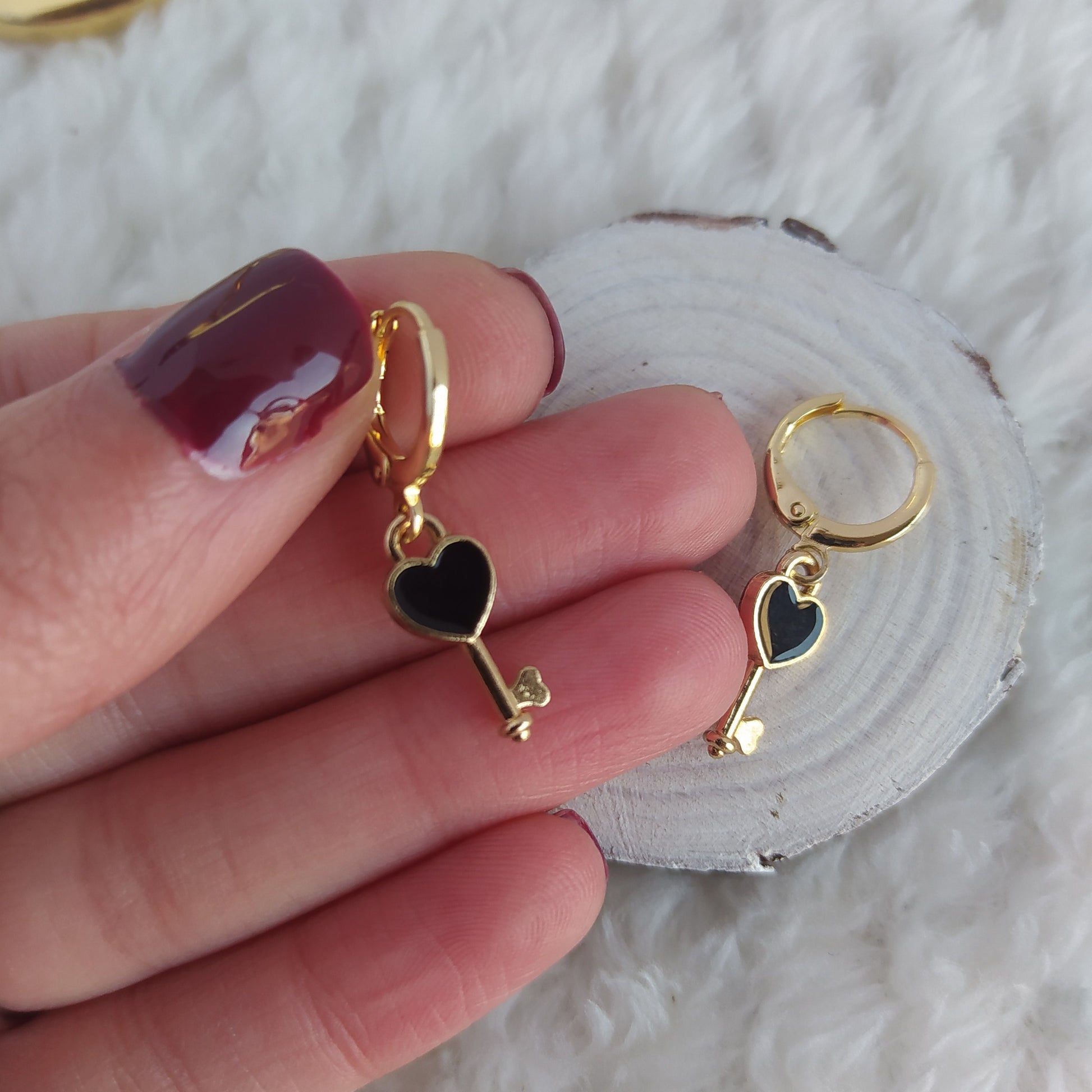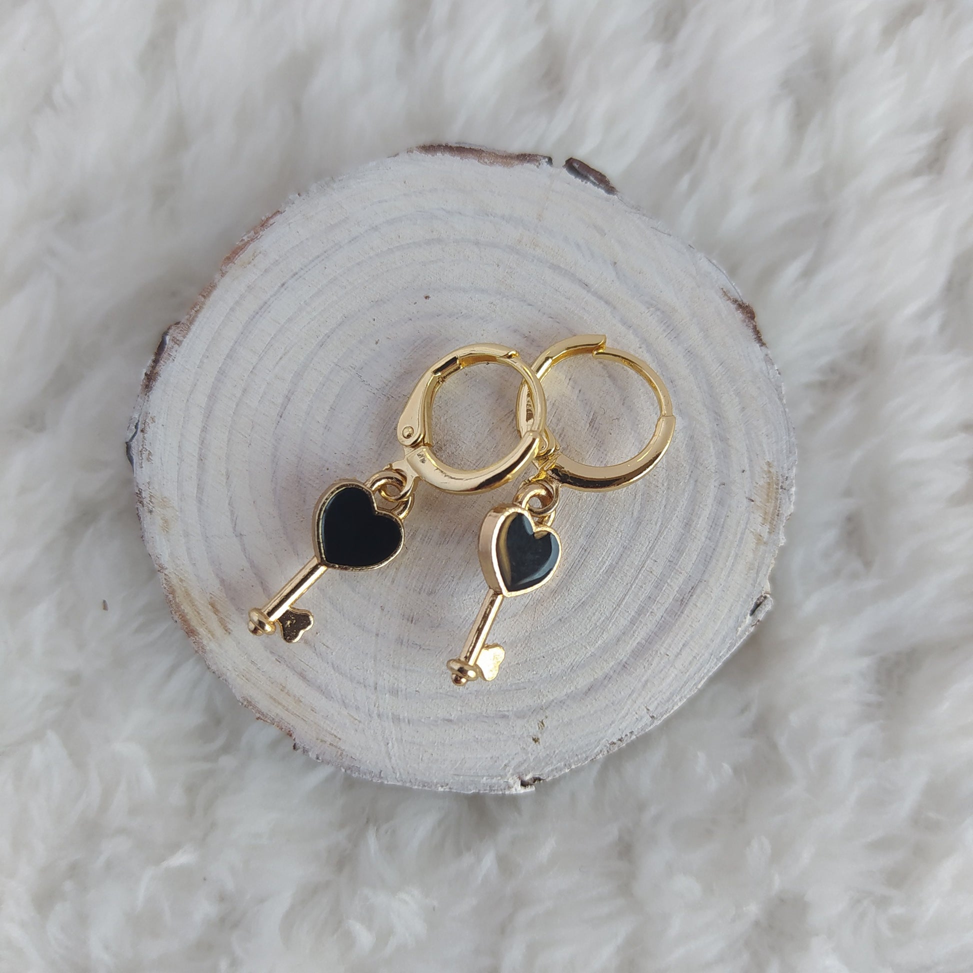 Aro pequeño de 9mm de diámetro de latón bañado en oro con mini dije en forma de llave del mismo material, montado de forma artesanal. Largo aproximado 3cm.