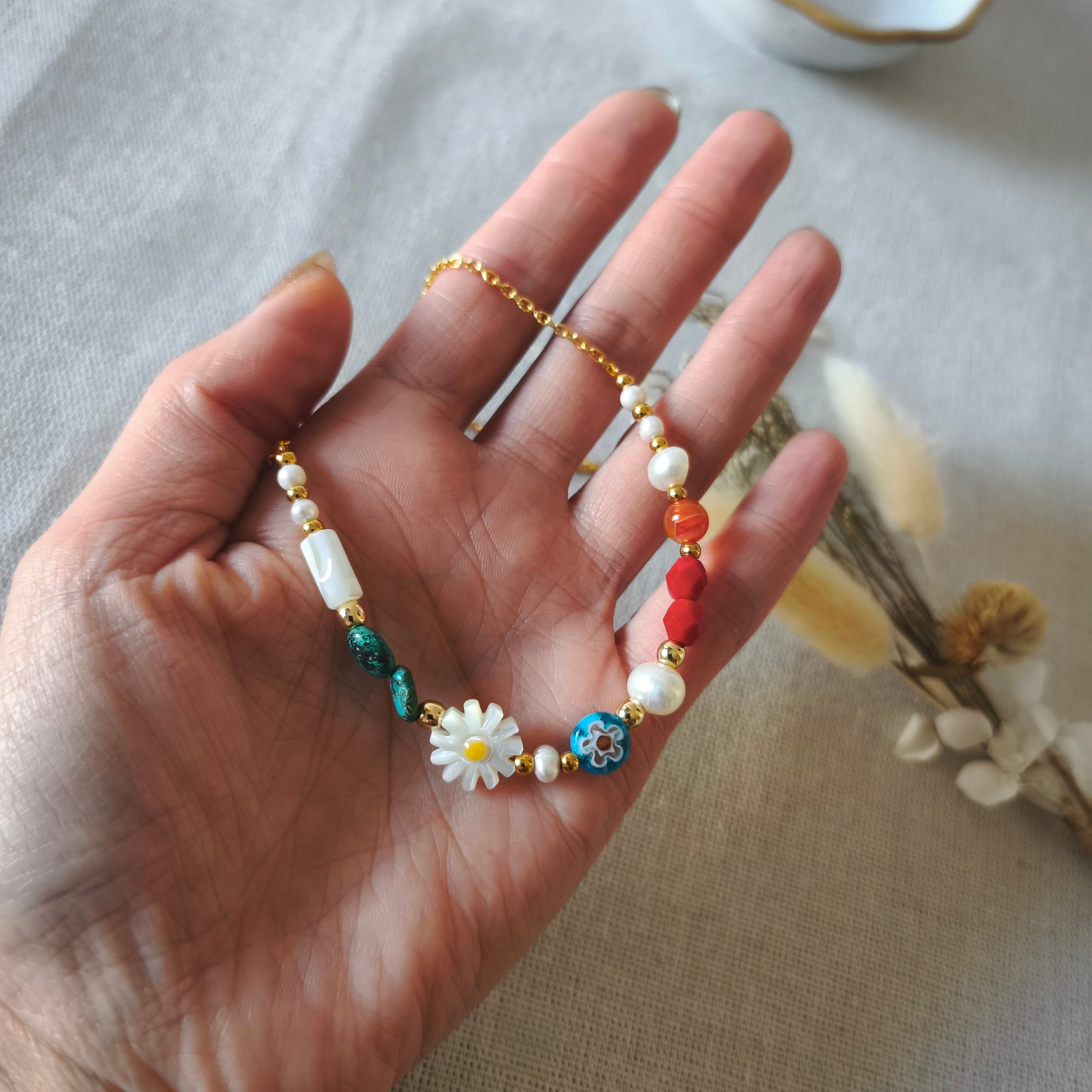 Diseñé este collar combinando tesoros de la tierra y el mar que tienen un significado precioso para mí: