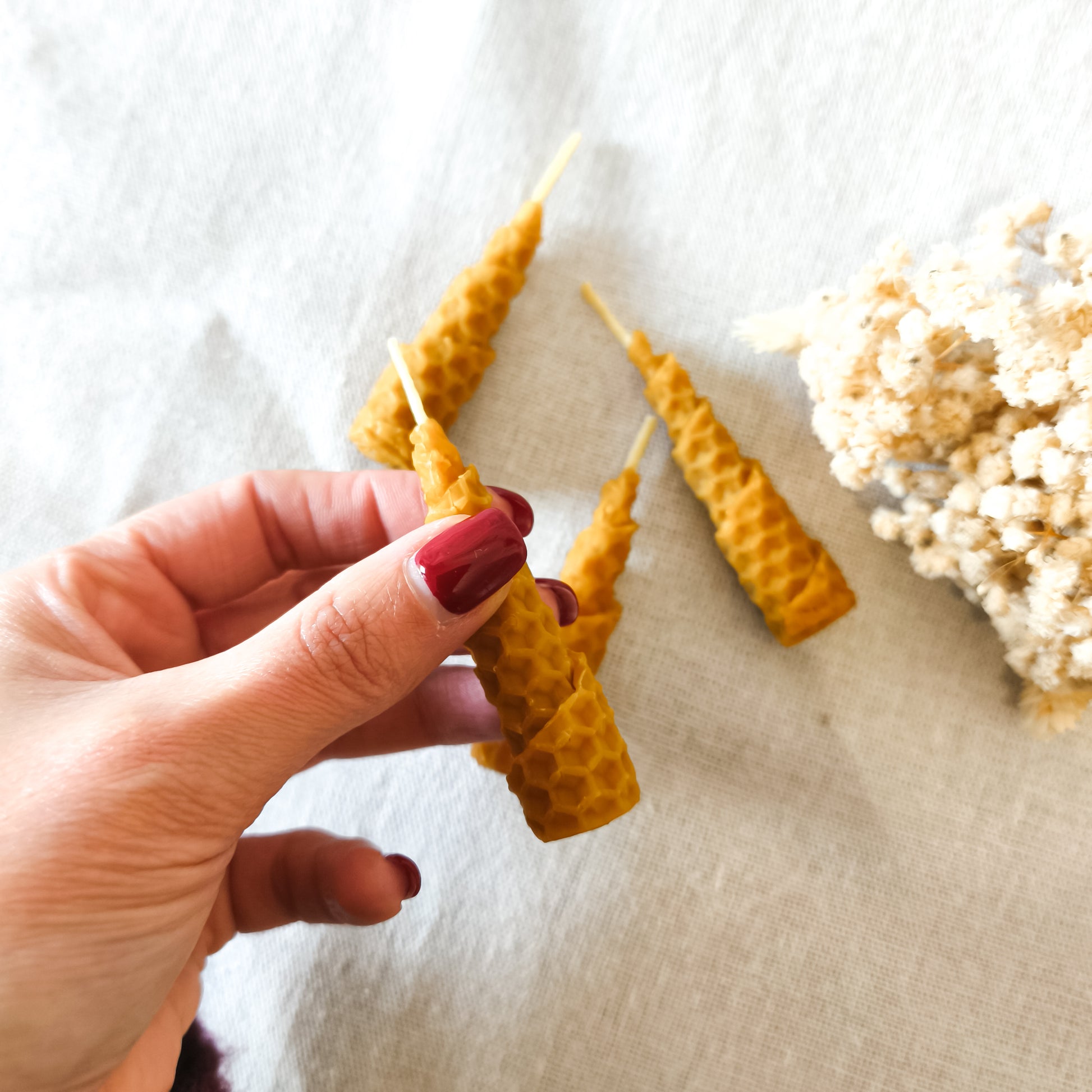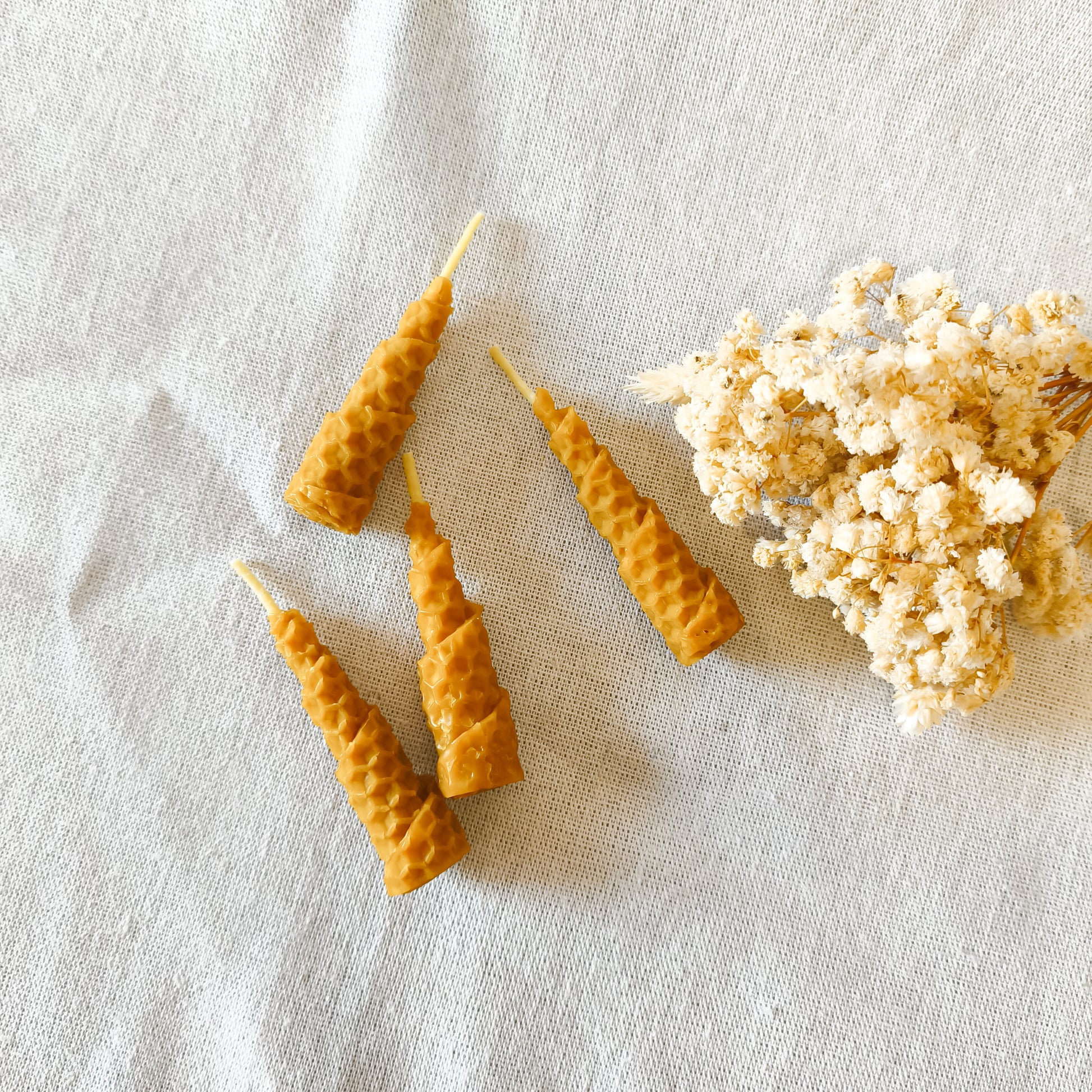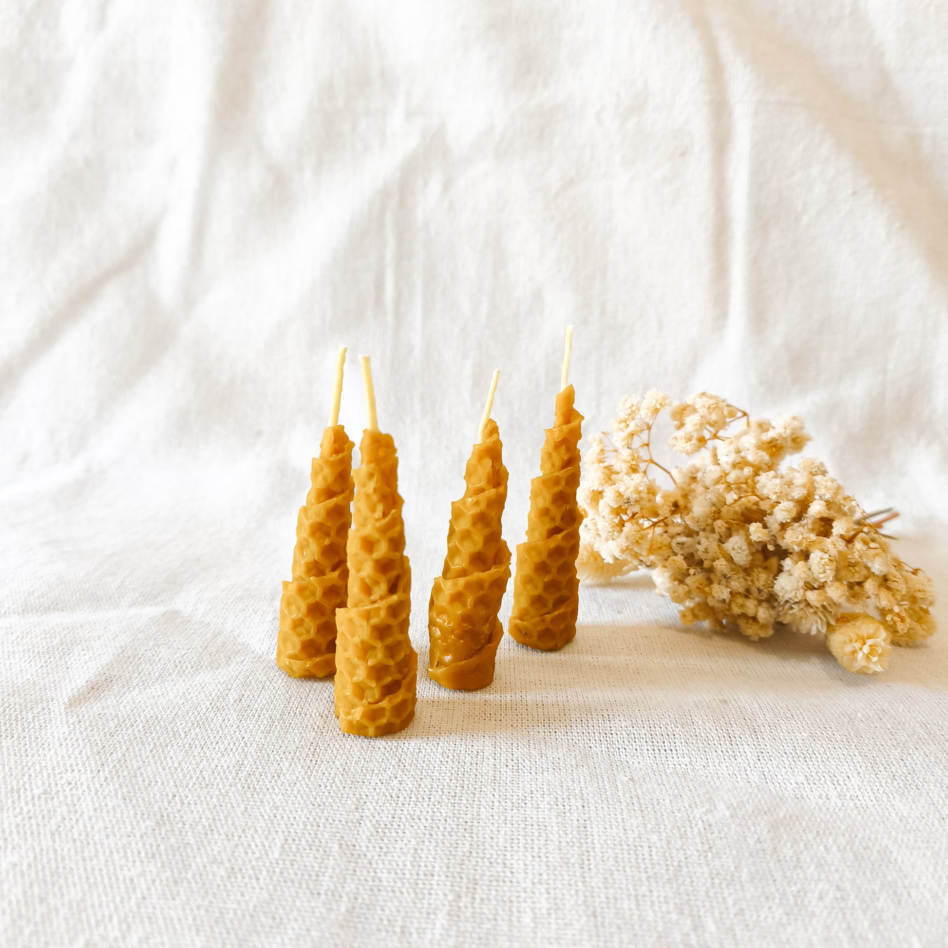 Mini vela de miel natural en espiral de 1,8x6cm.