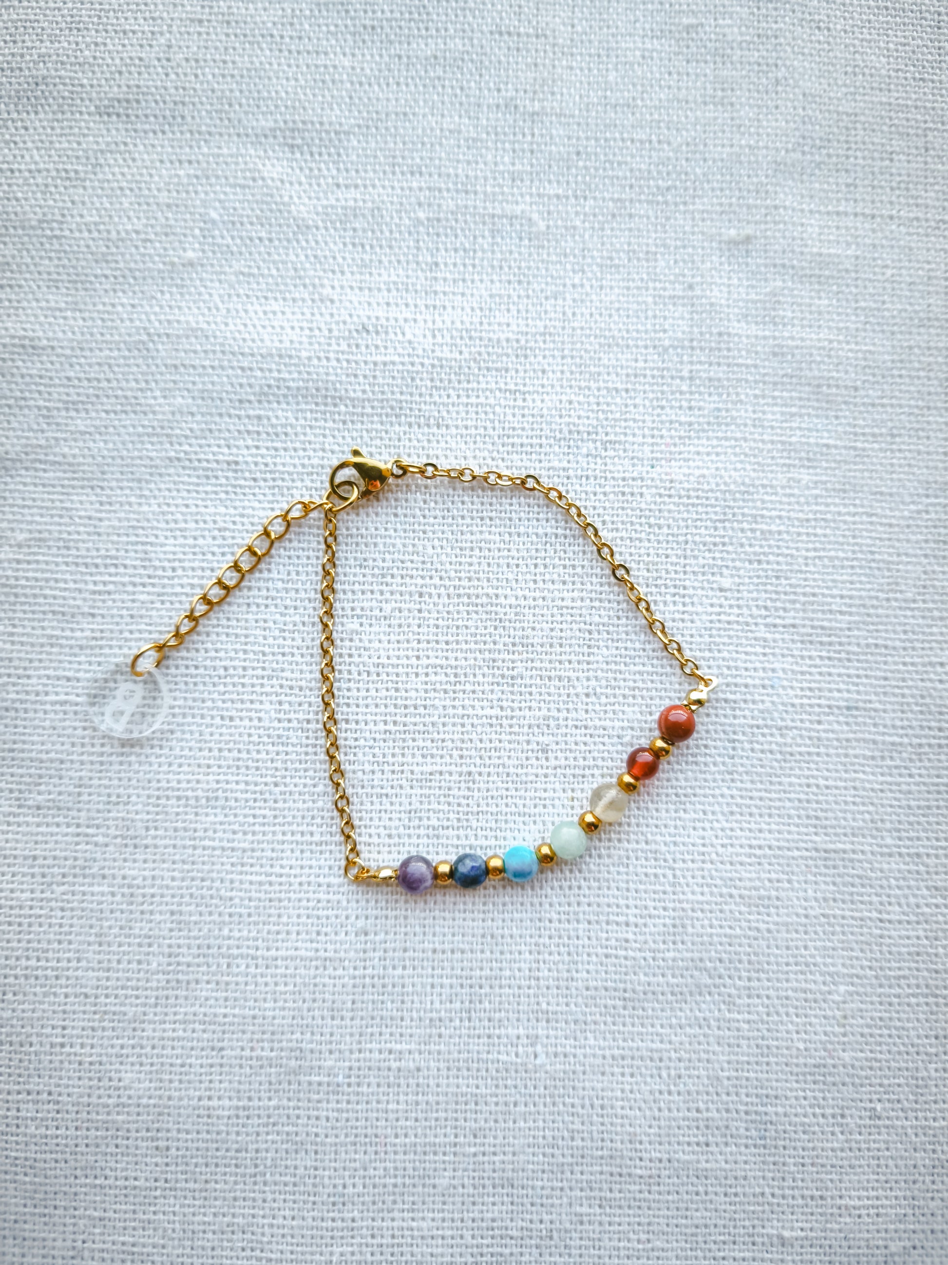 Pulsera 7 Chakras Cadena Piedras Pequeñas Dorado