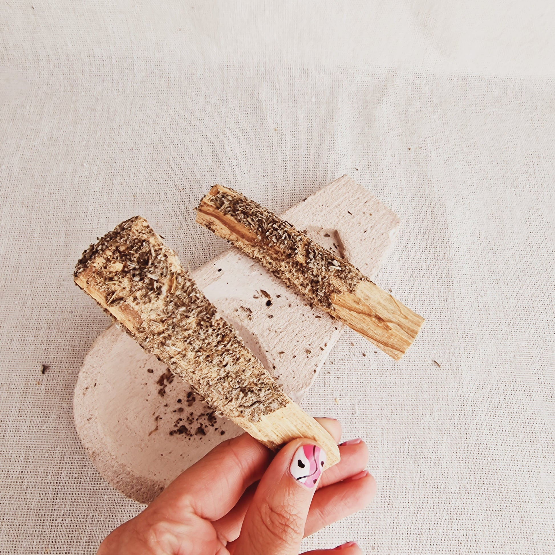 Varita de Palo Santo lista para ser utilizada. Los tamaños son irregulares así que pueden variar, pero siempre intentaré que sea del tamaño que aparecen en las fotos. Incluye guía de uso y beneficios.
