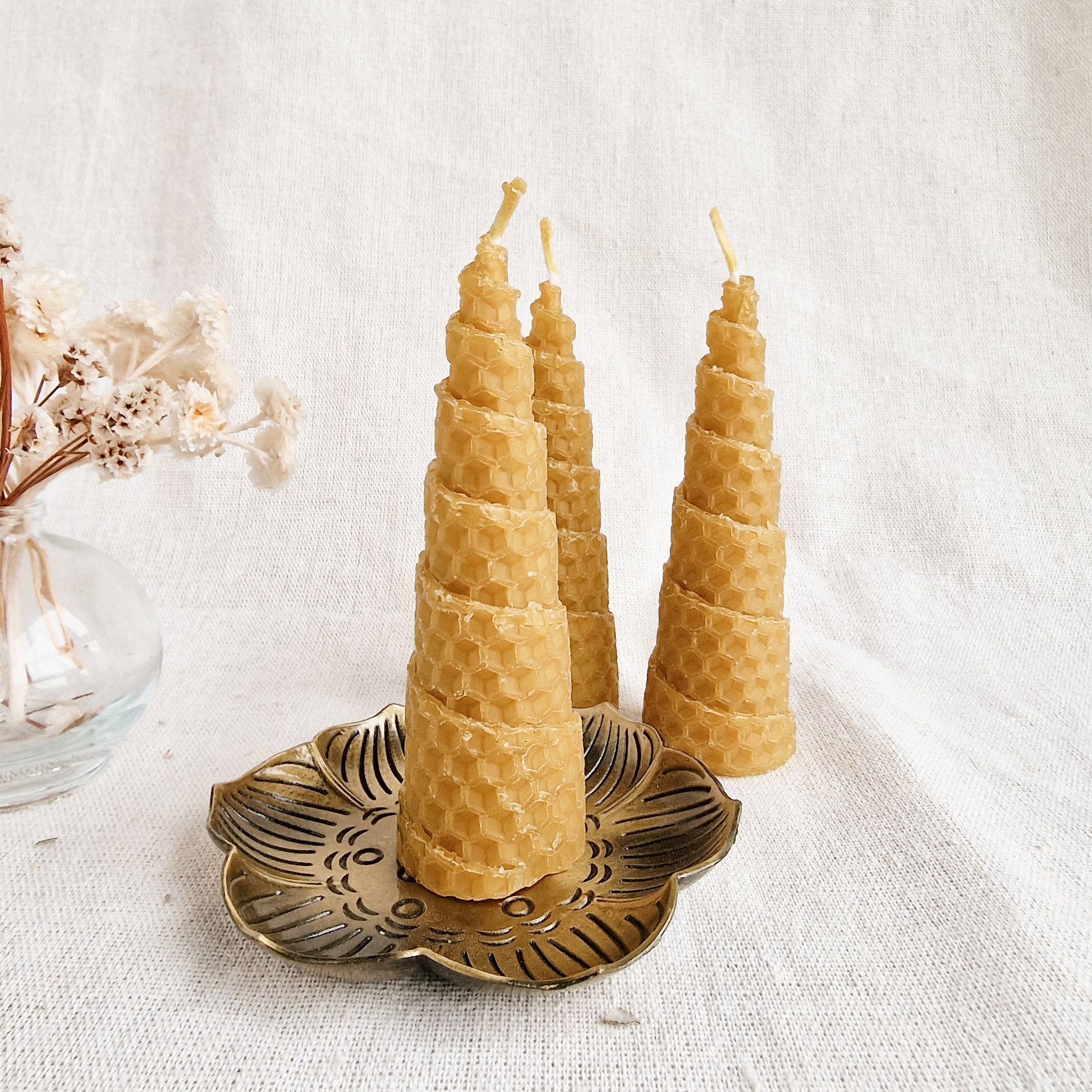 Las velas de miel o de cera de abeja son 100% naturales y ecológicas, que generan cero residuos porque se consumen en su totalidad. Tienen un suave aroma a miel que perfumará la estancia durante todo el tiempo que esté encendida. También purifican el aire. Promueven la calma y la concentración y son un conductor natural de energía positiva.